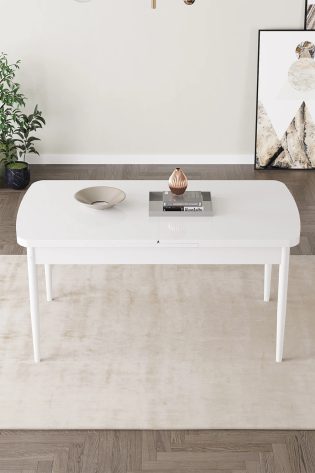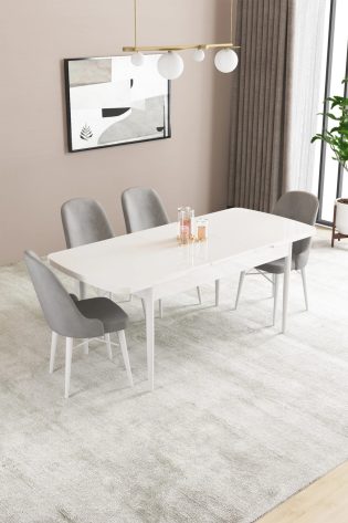 Almira Serisi, Beyaz 80×132 Açılabilir Mdf Mutfak Masası Takımı 6 Adet Sandalye