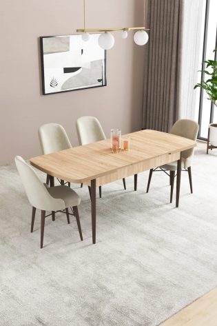 Almira Serisi, Meşe Desen 80×132 Açılabilir Mdf Mutfak Masası Takımı 6 Adet Sandalye