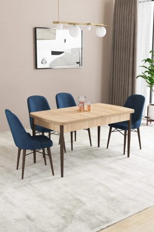Almira Serisi, Meşe Desen 80×132 Açılabilir Mdf Mutfak Masası Takımı 4 Adet Sandalye